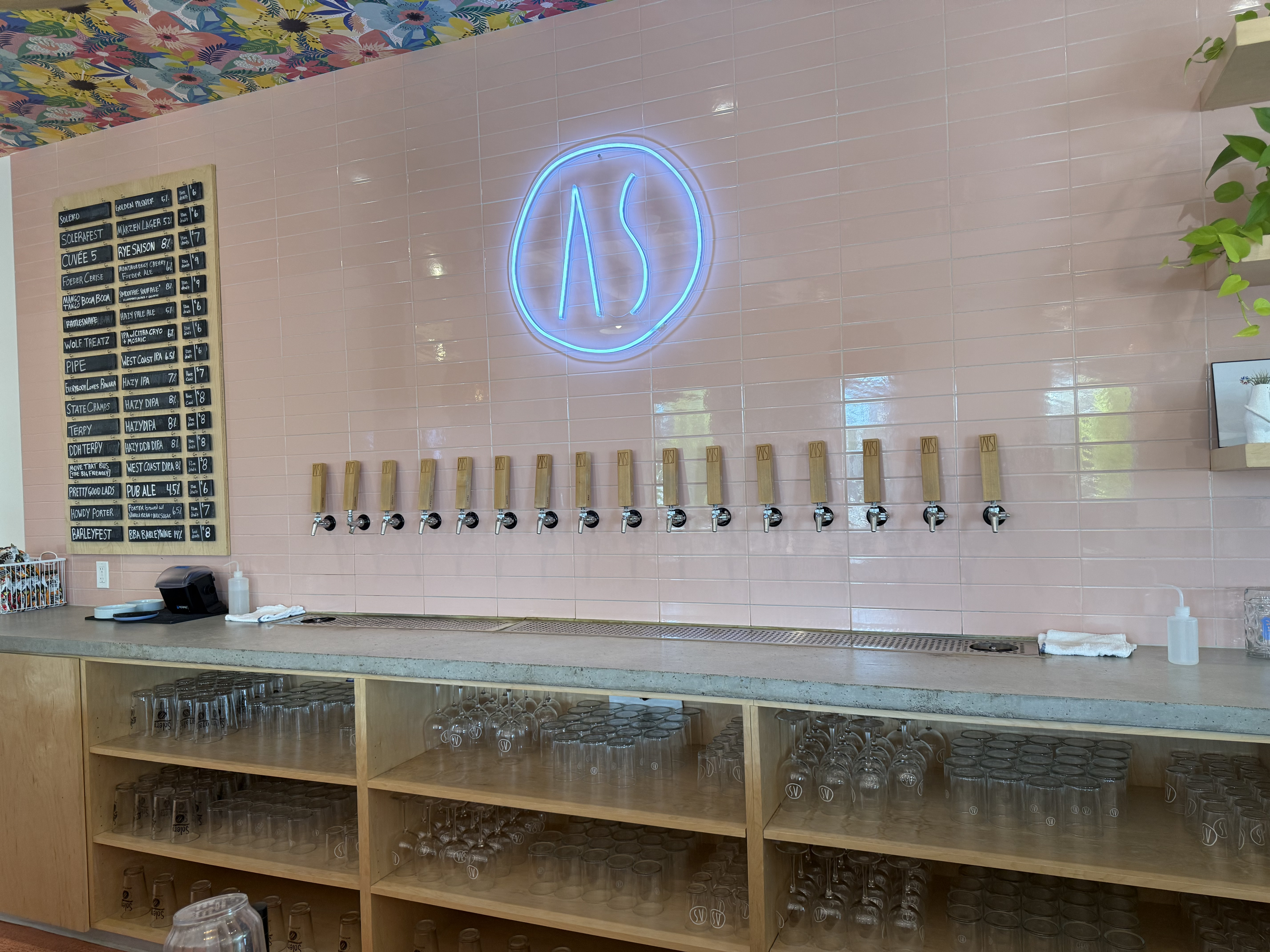 The American Solera taproom is all vibes, much like their Tulsa locations, with pastel colors, and a minimalistic neon sign with their logo. The Edmond location even has an exclusive beer, an English pub ale, of course which is right up my alley!