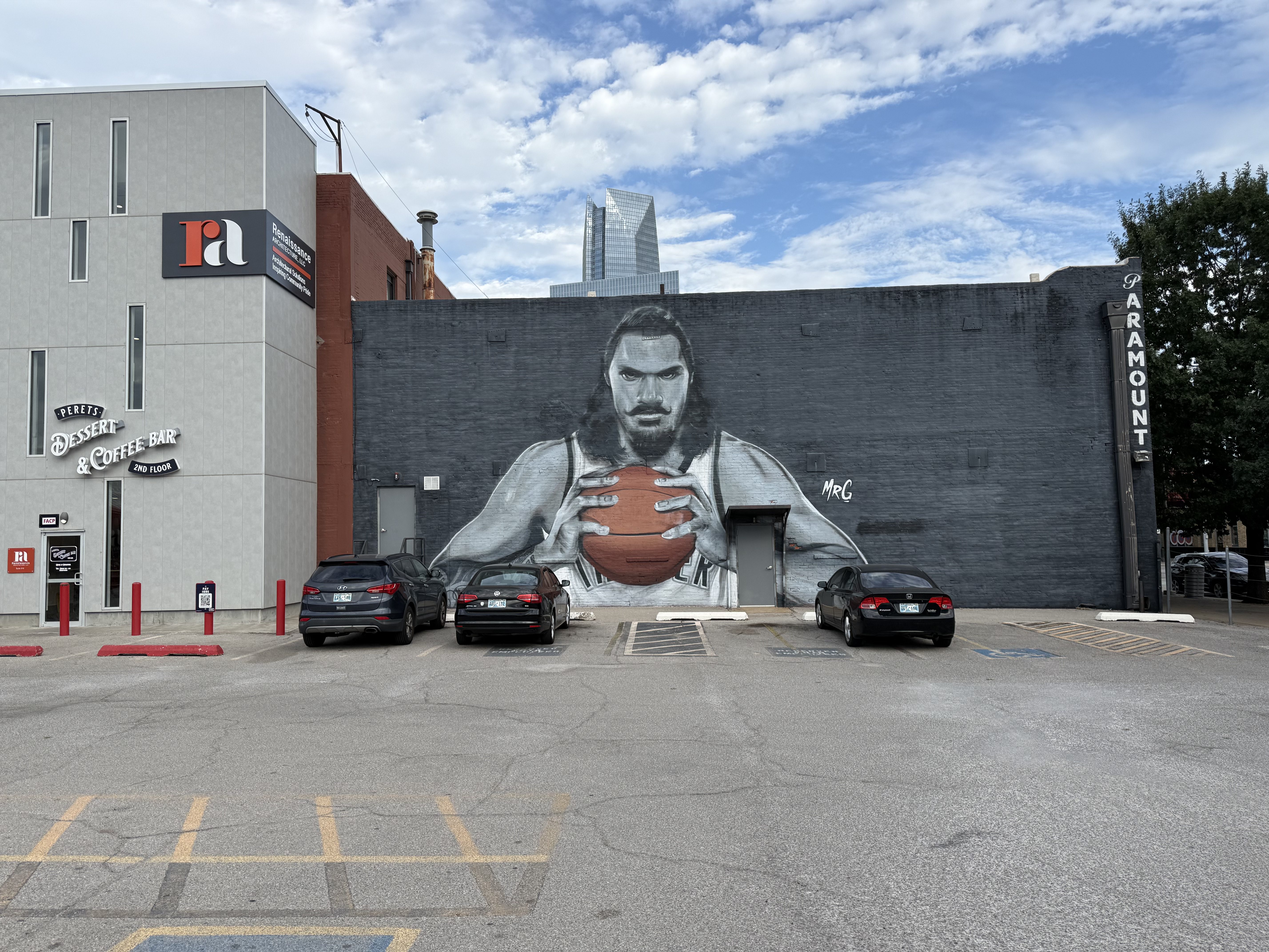 One thing I have to love is the mural of former Oklahoma City Thunder center Steven Adams outside the nearby Paramount theater: