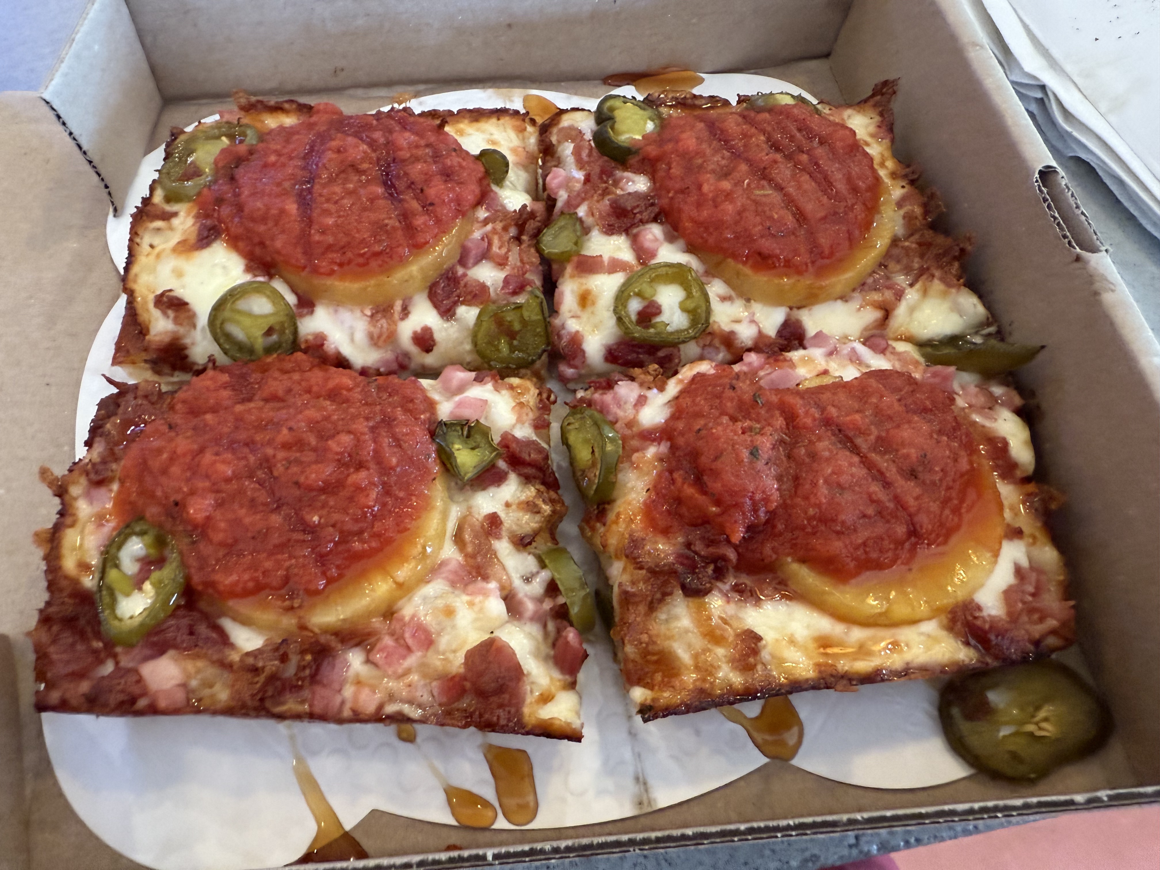 Detroit-style Pizza: Spicy Hawaiian from Woodward Pizza, Edmond, OK