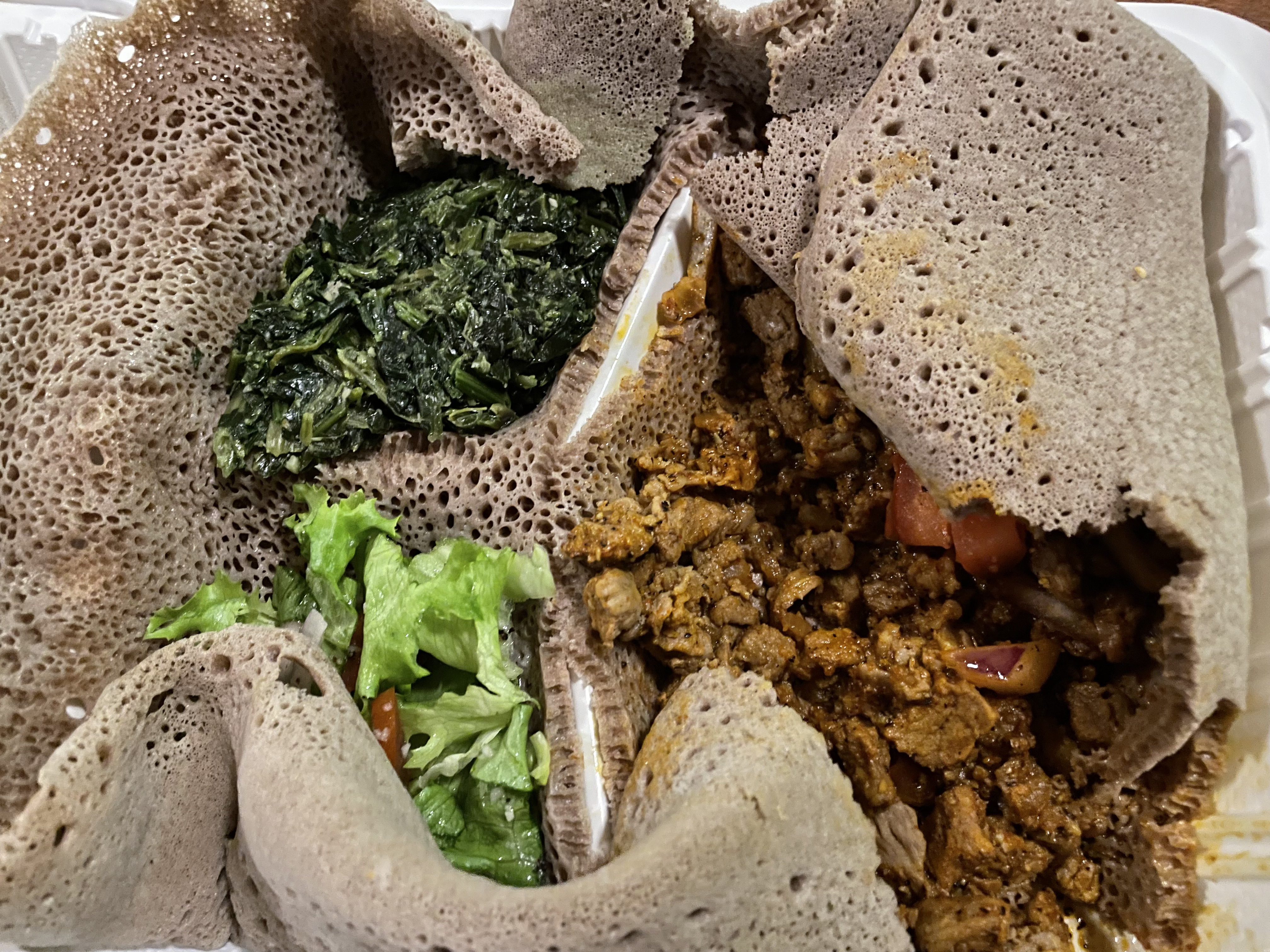 Two doors down from the brewery is an Ethiopian restaurant, so I ordered up some beef tibs, collard greens, and injera, completing the certifiably eclectic experience.