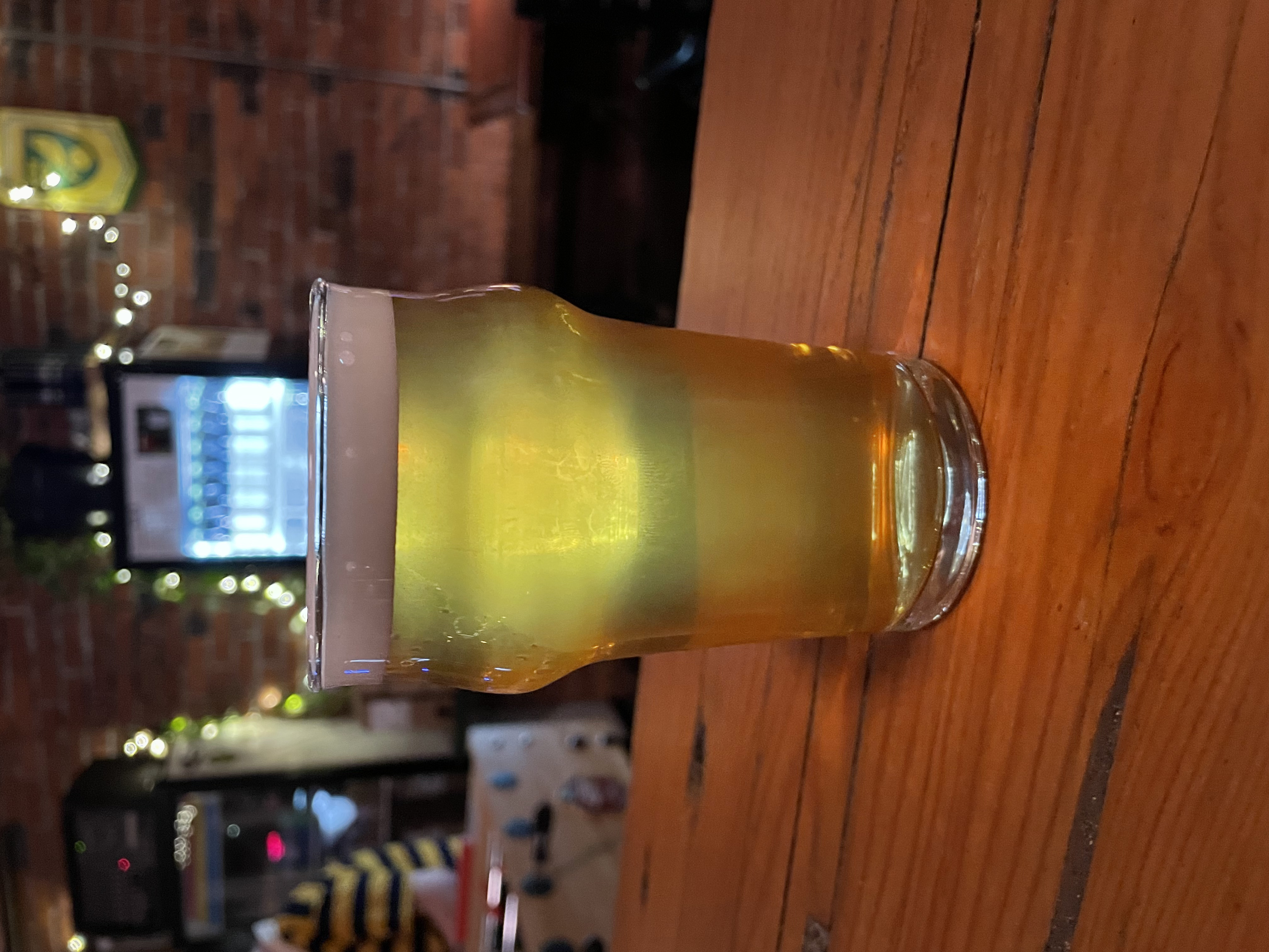 Likely Brett C mild funk, more overripe fruit, super rocky head retention with mild hop character. Super mild on the palate overall, easy to drink! GABF Silver.